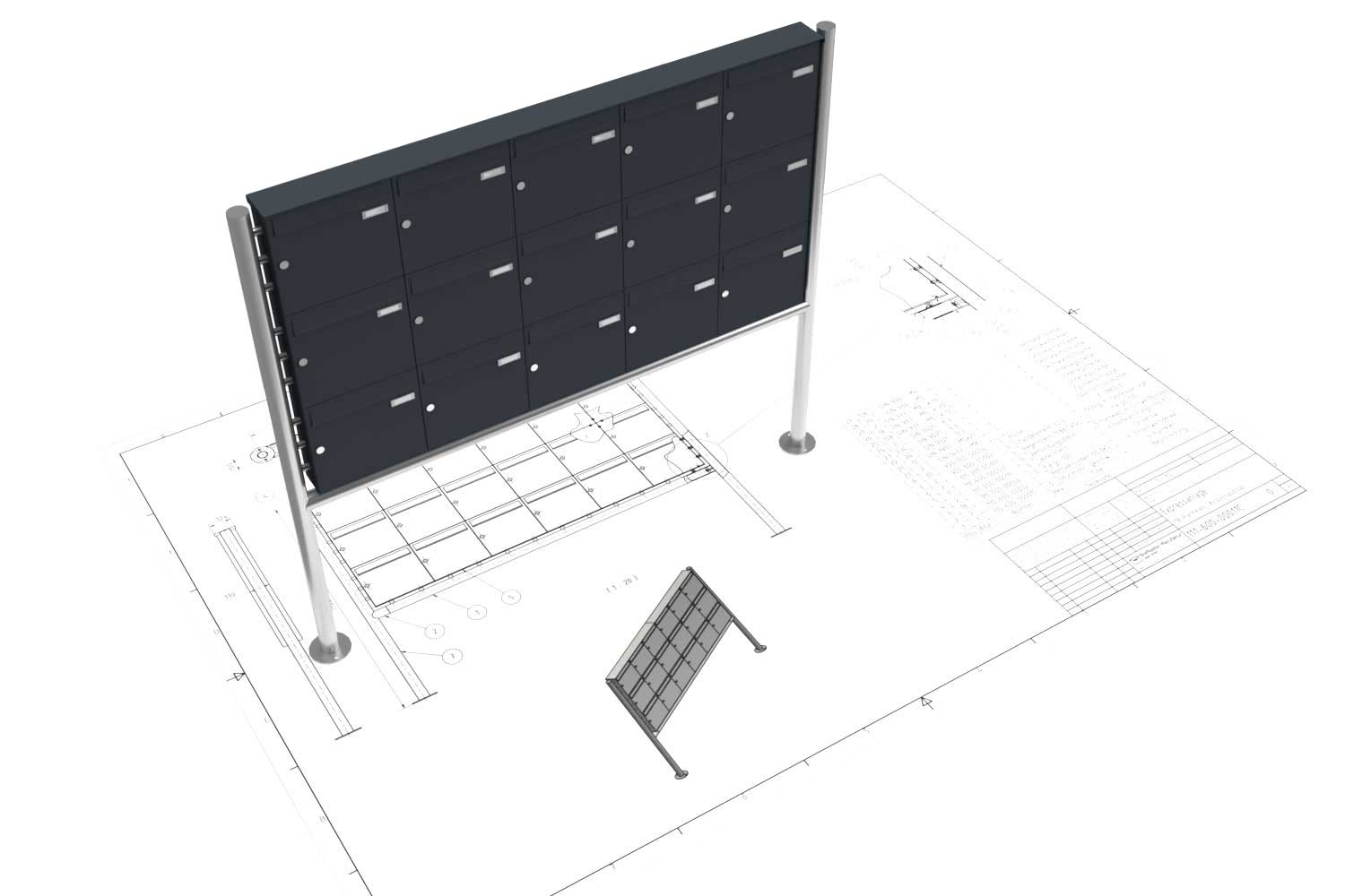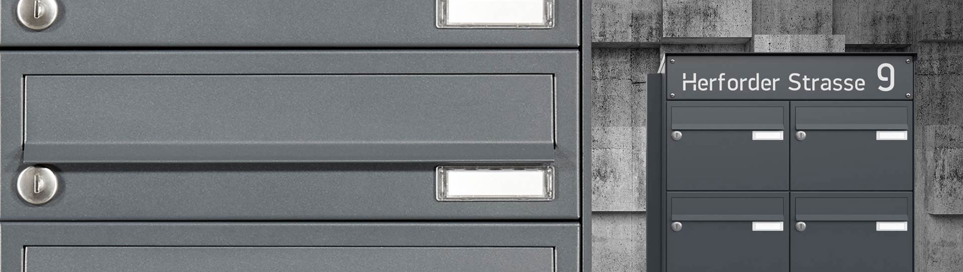 The BASIC collection of letterboxes, free-standing letterboxes and letterbox systems is characterised by the best price-performance ratio and great flexibility. Individual boxes as a letterbox system, often without panelling (optional, included from BASIC Plus).