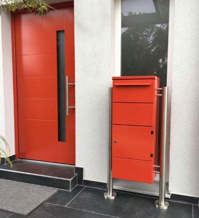 Gracias a nuestra flexible producción artesanal y a los 1.500 m² de espacio de almacenamiento en nuestro emplazamiento de Bad Salzuflen, puede obtener una gran selección de buzones, buzones independientes y sistemas de buzones de Briefkasten Manufaktur en tan sólo unos días laborables. La mayoría de los sistemas pueden ser configurados por el cliente, de modo que la altura de los elementos de soporte, el número de buzones o el color pueden adaptarse fácilmente. También se puede integrar una amplia gama de accesorios, como un toldo para la lluvia, un compartimento para periódicos, botones adicionales para el timbre, botones luminosos y el grabado del número o nombre de la casa.
