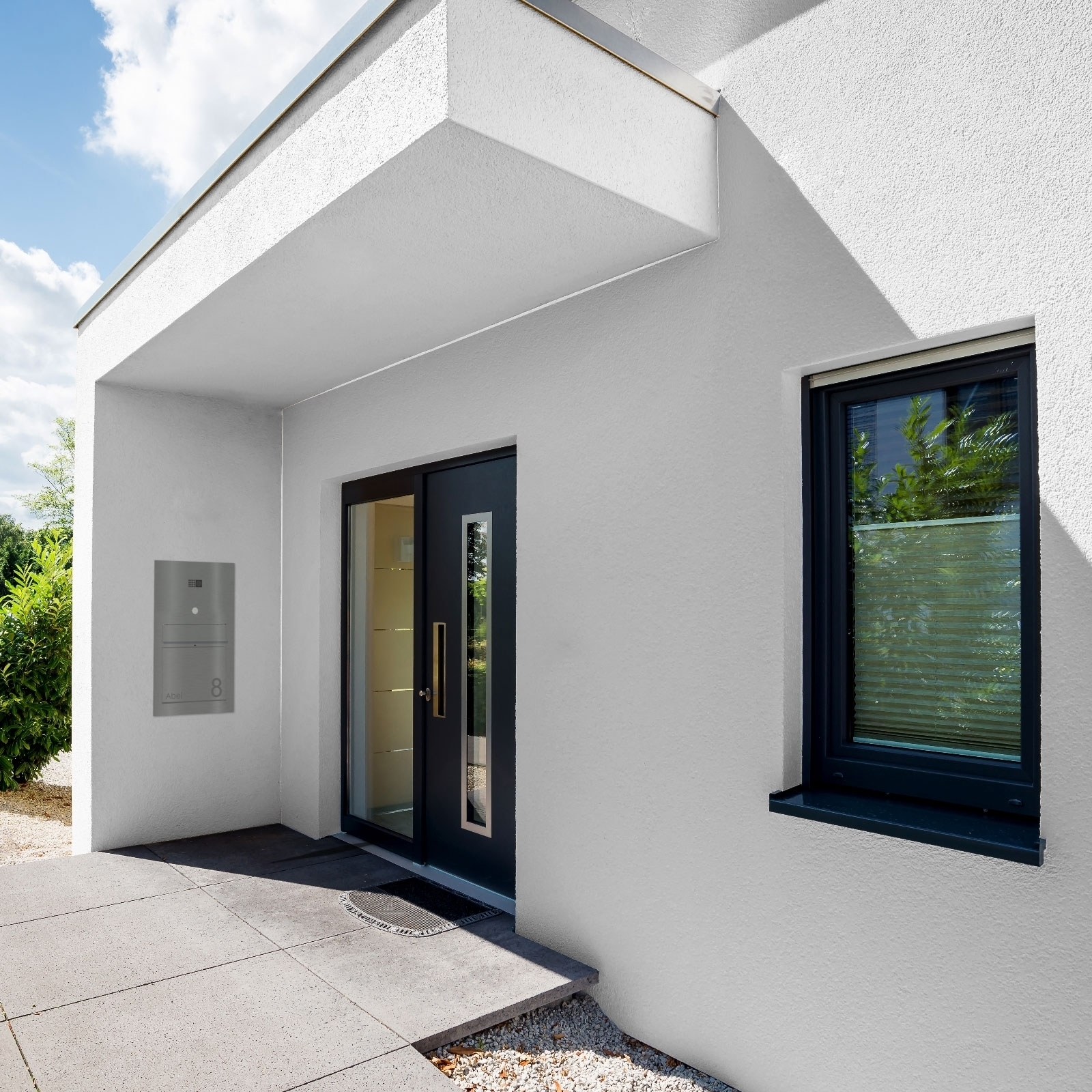 - Einheitliches Design: Materialien und Oberflächen von Briefkasten und Türstation sind aufeinander abgestimmt.