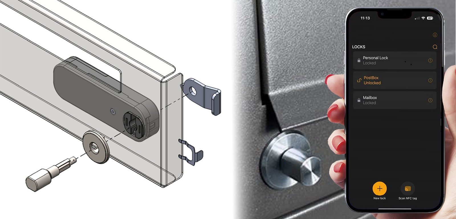 Ein zusätzliches Highlight: Die Öffnung ist auch per NFC (Near Field Communication) möglich. Halten Sie einfach Ihr Smartphone an den beiliegenden NFC-Tag (nur mit Kunststoffnamensschild möglich!) – die App öffnet sich automatisch und Sie können das Schloss öffnen.